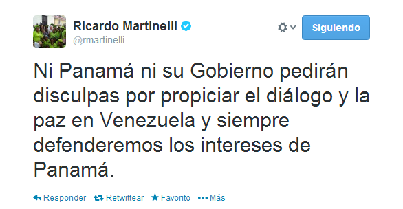 En tanto el mandatario panameño, respondió aclarando que “ni Panamá ni su Gobierno pedirán disculpas por propiciar el diálogo y la paz en Venezuela y siempre defenderemos los intereses de Panamá”.
