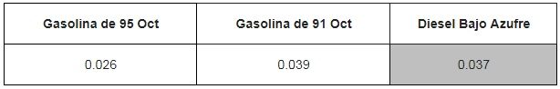 Por su parte, el diésel tendrá un ajuste de 4 centavos para tener un precio a la venta de 0.758. Los precios estarán vigentes hasta el 11 de mayo de 2018.
