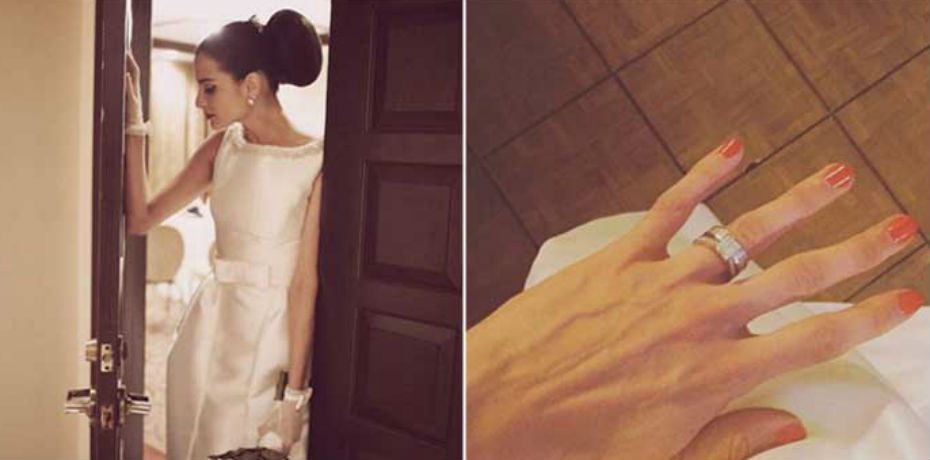La cantante publicó una fotografía en su Instagram, con la imagen de su anillo de compromiso y la sortija de matrimonio sobre su mano izquierda y con un vestido blanco en el fondo.