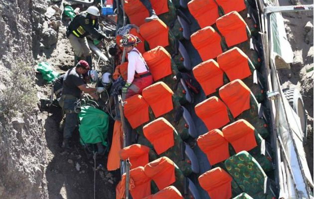 Al menos 30 personas murieron y otras 17 resultaron gravemente heridas este miércoles después de que un autobús de pasajeros se volcó y cayó a un abismo en la región Arequipa, en el sur de Perú, informaron fuentes oficiales.