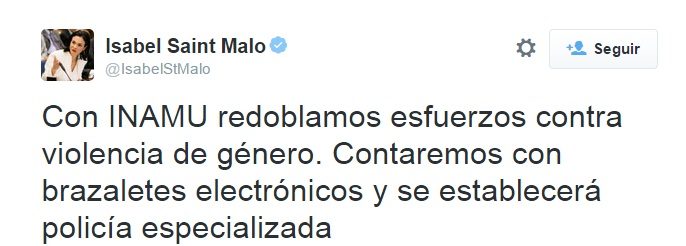 La vicepresidenta de la República, Isabel Saint Malo de Alvarado dio a conocer hoy, domingo a través de su cuenta de Twitter que se establecerá una policía especializada contra la violencia de género.