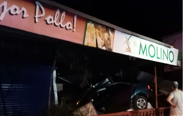 Un fuerte estruendo despertó a los moradores que residen próximo al restaurante El Molino, en David, provincia de Chiriquí, cuando un vehículo tipo sedán chocó contra la estructura, quedando dentro del establecimiento.