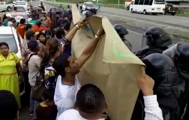 Unidades de control de multitudes sacaron de las calles a moradores de la comunidad de Aserrío, Gariche, Las Azules, Barro Blanco, en el distrito de Bugaba cuando estos realizaron una protesta cansados de promesas y decidieron cerrar la vía Panamericana a la altura de Gariche.