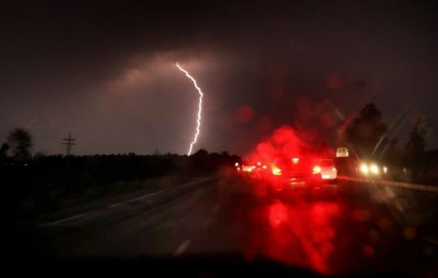 Un coche frena al caer un rayo a las afueras de nueva Delhi. Foto: EFE
