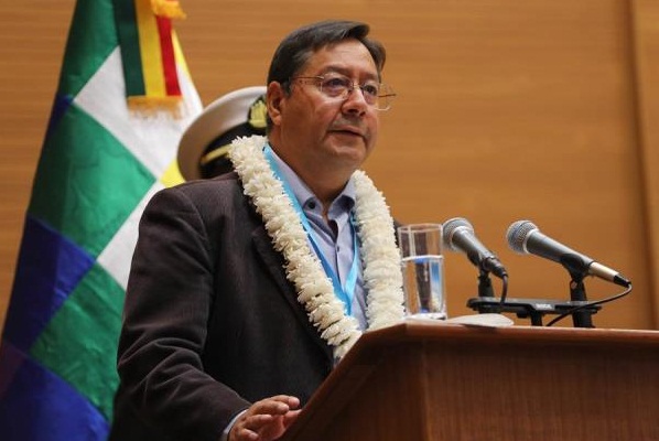 El presidente Luis Arce, recalcó la importancia de escuchar a las "bases" que piden "que se dé oportunidad a nuevos actores", a lo que los asistentes respondieron coreando "queremos gente nueva". Foto: EFE