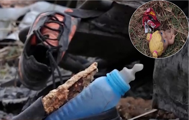 Vista de los artículos que pertenecían a los migrantes y quedaron en el lugar del siniestro vial.