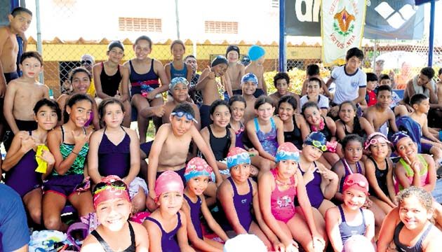 Bajo un sol radiante y el toque eufórico del público fue solo una parte del ambiente que se vivió en el tercer festival intercolegial de natación del Instituto Justo Arosemena.