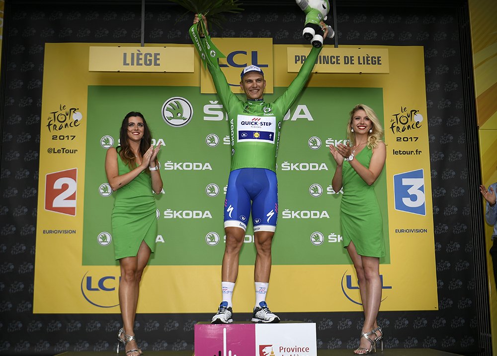 También la décima victoria de la temporada para Kittel, que añade a sus cuatro triunfos en el Giro y uno en la Vuelta. Y de premio el salto al tercer lugar de la general, que mantuvo a Thomas al frente con 5 segundos de adelanto sobre el suizo Stefan Kung (BMC).