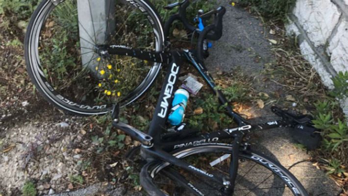 El ciclista del equipo Sky publicó la información a través de las redes sociales. Acompañó el mensaje con una fotografía de su bicicleta destrozada.
