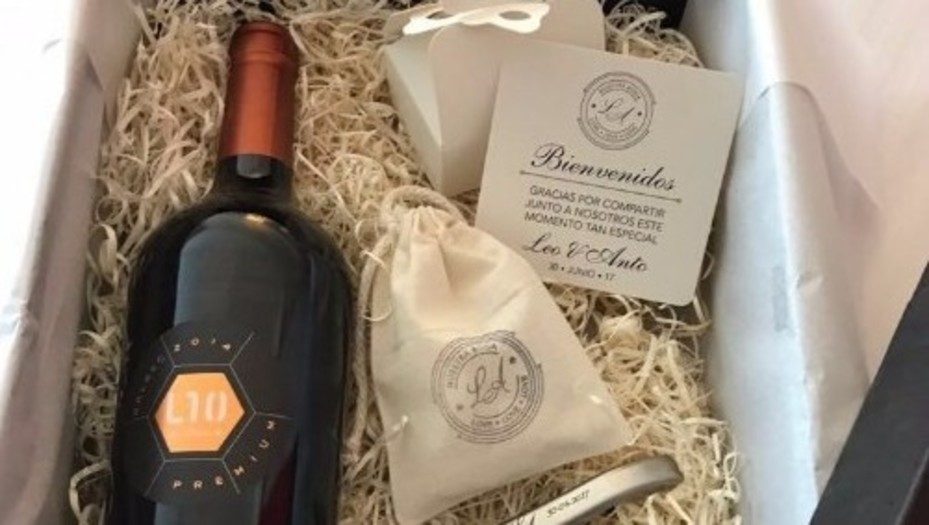 "Bienvenidos. Gracias por compartir junto a nosotros este momento especial. Leo y Anto", esgrime la carta que acompaña al souvenir.