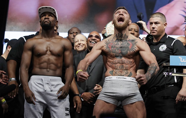 Conor McGregor en el pesaje oficial para su pelea contra Floyd Mayweather Jr. Foto EFE