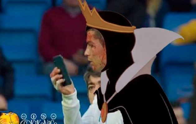Cristiano Ronaldo inspiró una gran cantidad de memes después de revisarse una sangrienta lesión en la cabeza con un teléfono, mientras salía del campo ayer.