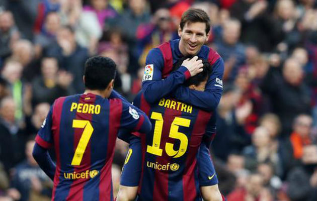 El Barça sigue viviendo en la exuberancia, aupado por la excelencia de Leo Messi, autor hoy de un triplete en la goleada ante el Levante (5-0), que supone la undécima victoria consecutiva de los azulgrana con lo que igualan un registro del Barcelona entrenado por Pep Guardiola. Messi celebró a lo grande su partido 300 en la Liga. Sumó tres goles y alcanza los 269 tantos, 26 de ellos en el presente campeonato, y además asistió a Neymar en la jugada que abrió el marcador. El partido fue redondo para el Bara que cerró el marcador con un magnífico gol de chilena de Luis Suárez, hoy suplente. El Barça ha apurado un nuevo capítulo de su vida después de Anoeta. Desde aquella derrota nada es como antes, con el tiempo, quien sabe, igual se recordará como el punto de inflexión de los azulgrana, como aquel 6-3 del Barcelona de Johan Cruyff en La Romareda (1994). La evidencia es que la velocidad de crucero del equipo de Luis Enrique es otra desde entonces. Juega con más determinación, precisión, velocidad y fluidez, pero sobre todo cree más en lo que hace. Cada recuperación es media ocasión de gol. Neymar desequilibra casi siempre y combina bien con Messi y el equipo, juegue con juegue, se lo cree. Frente al Levante, se produjeron hasta ocho cambios. Solo repitieron Mascherano, Neymar y Messi del último partido copero, pero el rendimiento no se resintió. Desde el primer minuto y con paciencia, movió el Bara el futbolín que había dispuesto Lucas Alcaraz. No tenía ocasiones, pero tampoco sufría. Se trataba de masticar el partido y esperar, madurar las acciones, a la espera de abrir la lata. Enfrente el Levante jugó a verlas venir. No puso el autobús como muchos rivales en el Camp Nou y buscó la velocidad de Xumetra, Barral y Uche para sorprender, pero solo tuvo un par de aproximaciones en el primer tiempo y ninguna en la segunda. En los primeros 45 minutos, el Bara ya pudo decidir el partido. Marcó dos goles, uno sin querer, y dio la sensación en todo momento de tener la situación controlada.Messi volvió a engordar sus estadísticas. En su partido 300, marcó tres goles y asistió en el primero. Le dio el 1-0 a Neymar, una jugada cómica en su resolución, pero que nació de una gran asistencia del argentino. El brasileño golpeó mal el balón ante Mariño y le salió un estupendo sombrero sin querer. Con Pedro abriendo espacios en lugar de Luis Suárez, el Bara mordía, pero en un despiste el Levante tuvo el empate en una ocasión de Barral (min.26). A partir de entonces, no hubo discusión. Apretaron los azulgrana y Messi monopolizó las ocasiones. Remató a las manos del meta en el minuto 34, le anularon un mano a mano con el portero por un fuera de juego inexistente (min.37) y marcó el 2-0 un minuto después. Fue en una recuperación de Bartra que lo dejó solo ante Mariño. Messi pudo marcar el tercero, pero falló solo en el área pequeña. Antes del inicio del segundo tiempo, ya todo el pescado estaba vendido. En el segundo tiempo, los barcelonistas volvieron a firmar un ejercicio práctico. Abusó de contrario, desaprovechó un par de ocasiones (minutos 53 y 55) y marcó el 3-0 en una gran acción iniciada por Busquets y concretada por Messi tras una asistencia de Pedro. El argentino anotó un nuevo tanto, esta vez de penalti, por una acción de Iván López sobre Neymar. Messi anotó su vigésimo sexto tanto en la Liga, a solo dos del pichichi Cristiano Ronaldo. La mejor acción del partido la protagonizó Luis Suárez poco después de salir. El uruguayo cazó de chilena un centro de Pedro para cerrar el marcador a un cuarto de hora del final. Goleó el Bara y ya se lo cree. Todas las constantes demuestran que está en el mejor camino ahora que llega la parte trascendente de la temporada.