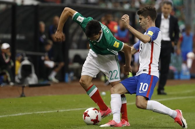 Michael Bradley adelantó a los visitantes con un fulminante zapatazo desde unos 30 metros cuando solo habían transcurrido cinco minutos de juego en el estadio Azteca. Pero Vela estableció la igualdad a los 22 minutos con un remate de zurda tras un contragolpe.