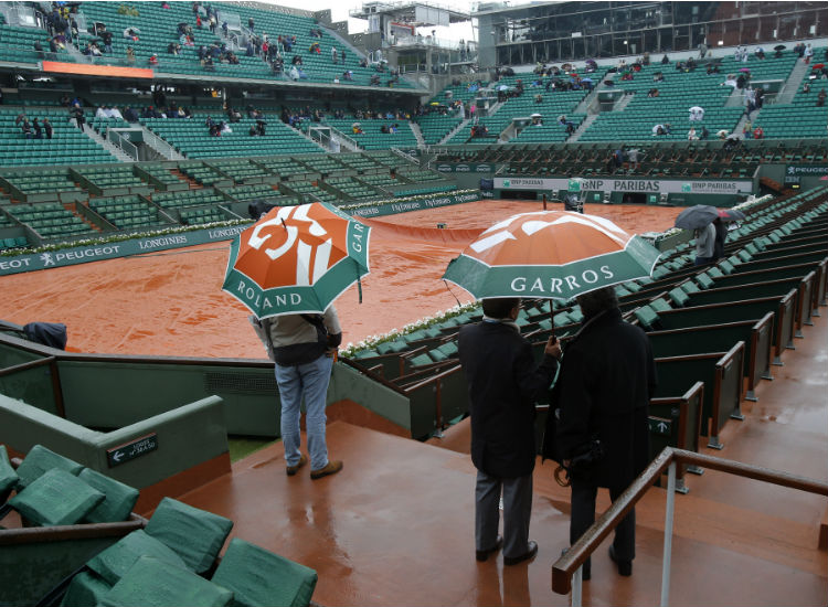 La persistente lluvia obligó a los organizadores del Abierto de Francia a cancelar todos los partidos de hoy lunes, la primera vez en 16 años que ocurre en el torneo Grand Slam que se juega en canchas de arcilla. Los organizadores informaron que los juegos serían reprogramados para mañana martes. Sin ningún encuentro hoy lunes, quienes tengan boletos pueden solicitar reembolsos. La última suspensión total por lluvia en París había sucedido el 30 de mayo de 2000, de acuerdo con los organizadores. El pronóstico del clima en Francia para los próximos días también luce gris, dado que mañana martes se espera más lluvia antes de un cielo despejado que se prevé para el miércoles. Si el clima lo permite, el serbio Novak Djokovic disputará mañana martes un lugar en los cuartos de final cuando se mida ante el español Roberto Bautista Agut, 14to preclasificado. En tanto que el también español David Ferrer jugará ante Tomas Berdych. En la rama femenina, las dos hermanas Williams verán acción mañana martes. La campeona defensora Serena enfrentará a la ucraniana y 18va preclasificada Elina Svitolina, mientras que Venus sostendrá duelo con la subcampeona del año pasado, la suiza Timea Bacsinszky.
