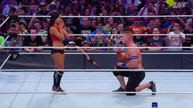 John Cena le pide matrimonio a Nikki Bella en WrestleMania 33.