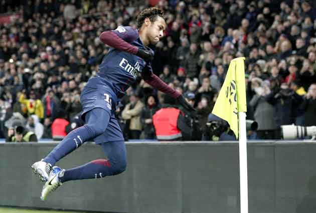 Neymar Jr de París Saint Germain celebra un gol. Foto EFE