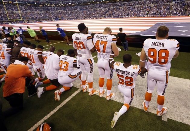 Kaepernick, ex quarterback de los 49ers, empezó a arrodillarse durante el himno en la pretemporada del año pasado, pronunciándose contra la inequidad social y el trato que la policía le da a la gente de raza negra, que consideran discriminatorio.