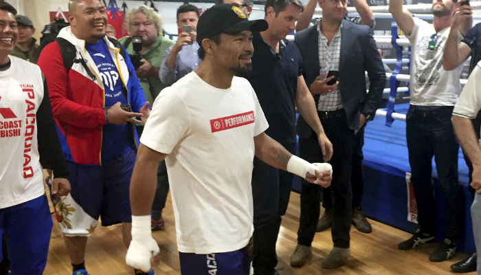 La última de las 38 victorias por nocaut de Pacquiao (59-6-2) fue en 2009, pero ha asegurado que ha cumplido su mejor preparación en año para esta pelea. Ha derribado a varios en sus sparrings, según Roach. El entrenador dijo que ha tenido que interrumpir varias sesiones porque rebasar la intensidad.