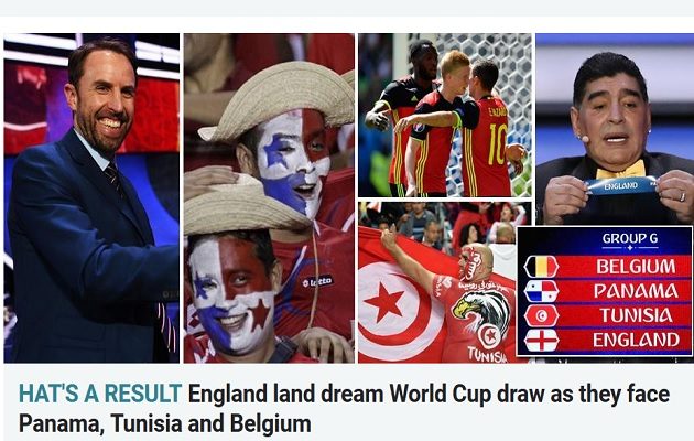 El diario sensacionalista The Sun asegura en su edición digital que Inglaterra quedó en un grupo soñado, en el que enfrentará a Panamá, Bélgica y Túnez.