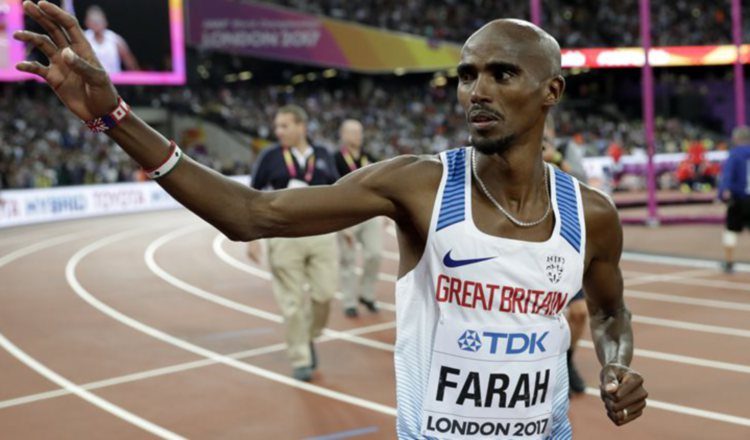 El saltador de altura catarí Mutaz Essa Barshim, el fondista británico Mo Farah y el...