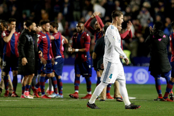 Sergio Ramos regresó como titular tras su lesión muscular y abrió el marcador de cabeza a los 11 minutos, pero Emmanuel Boateng empató a los 42 por el 17mo posicionado Levante.