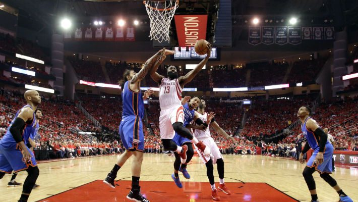 El escolta James Harden aportó 34 puntos y los Rockets ganaron por 105-99 a los Thunder que volvieron a estar metidos en el partido hasta los últimos segundos, pero como les sucedió en tres de los cuatro anteriores encuentros los tantos decisivos cayeron del lado del equipo tejano.