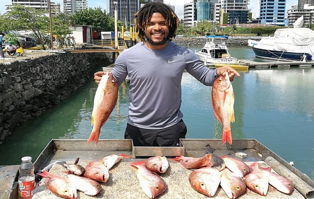 Torres con su pesca de pargo rojo.