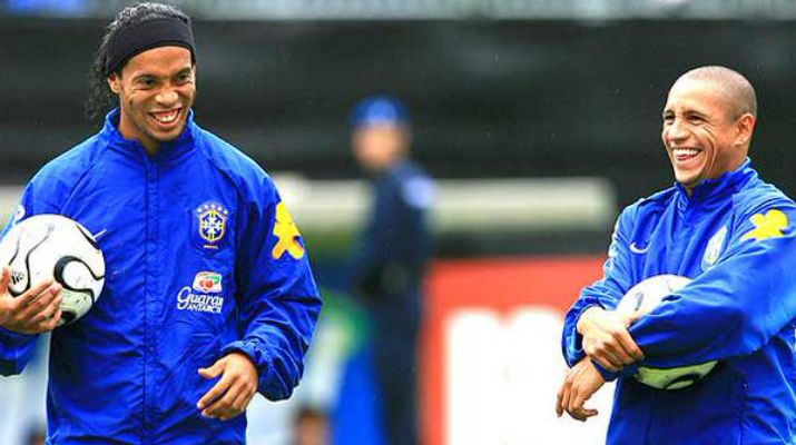 Ronaldinho y Roberto Carlos en el homenaje de jubilación de Mustafá Hadji