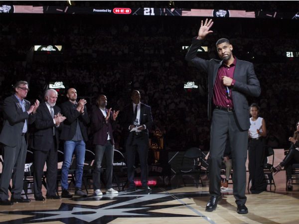 Los Spurs retiraron el jersey de Duncan después del partido. Duncan, piedra angular de la franquicia, se retiró antes de esta temporada, luego de conquistar cinco títulos de la NBA.