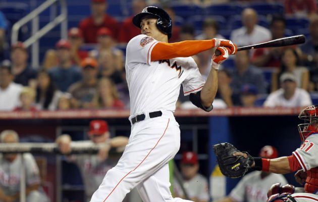 Stanton, firmó un contrato por 13 años y 325 millones de dólares, en presencia del dueño de los Marlins, Jeffrey Loria.