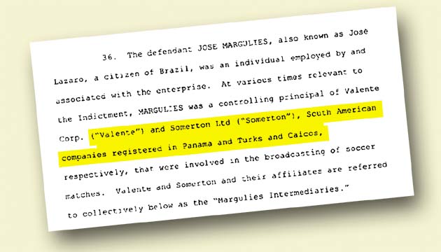 Nos referimos a las compañías Valente Corp. y Sumerton LTD, las cuales operaban desde Sudamérica. Su especialidad era la de promocionar las transmisiones de los partidos de fútbol por televisión y ambas estaban afiliadas a la empresa Margulies Intermediario, la cual presuntamente facilitaba pagos ilegales.