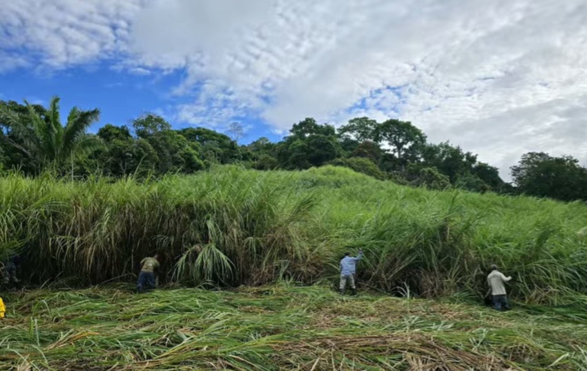 Desde hace más de cinco años, la organización realiza jornadas de restauración forestal en el Parque Nacional Camino de Cruces y Chagres para eliminar esta paja (Saccharum spontaneum).