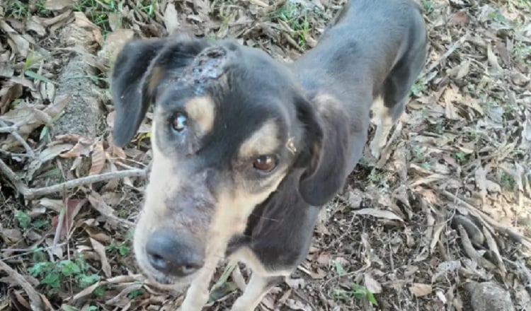 Uno de los perros rescatados por Chang Puppies, el cual había recibido fuertes golpes en la cabeza en la provincia de Veraguas. Cortesía