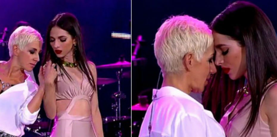 Las dos artistas echaron de miradas y roces para cantar uno de los considerados himnos de Mecano, un canto al amor libre entre dos mujeres.
