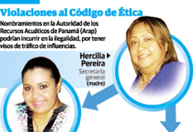 Al más alto nivel del organigrama actual de la Autoridad de los Recursos Acuáticos de Panamá (Arap) se practica el tráfico de influencias, incluso con conexiones que apuntan también al nepotismo.