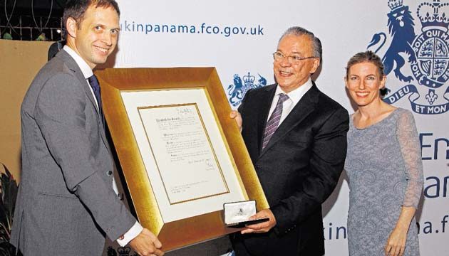 El Embajador Británico, Ian Collard, realizó la condecoración otorgada por la Reina Isabel II al Presidente Ejecutivo y Gerente General de Cable & Wireless Panamá, Jorge Nicolau, por su valiosa contribución en el sector empresarial y social del país. En la entrega de la distinción a don Jorge Nicolau estuvo Tamara Collard.