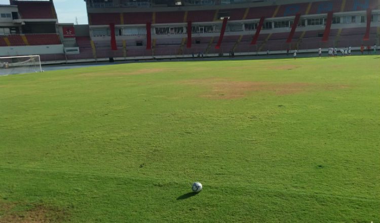 La cancha del estadio Rommel Fernández no tiene su mejor cara, se ve precaria, mientras los jugadores del seleccionado mayor entrenan con miras a su partido ante Estados Unidos el 27 de enero en Arizona.