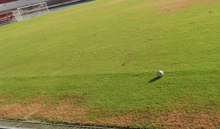 La cancha del coloso de Juan Díaz necesita constantemente hidratación y se espera que entre unos 7 días pueda cambiar la cara.