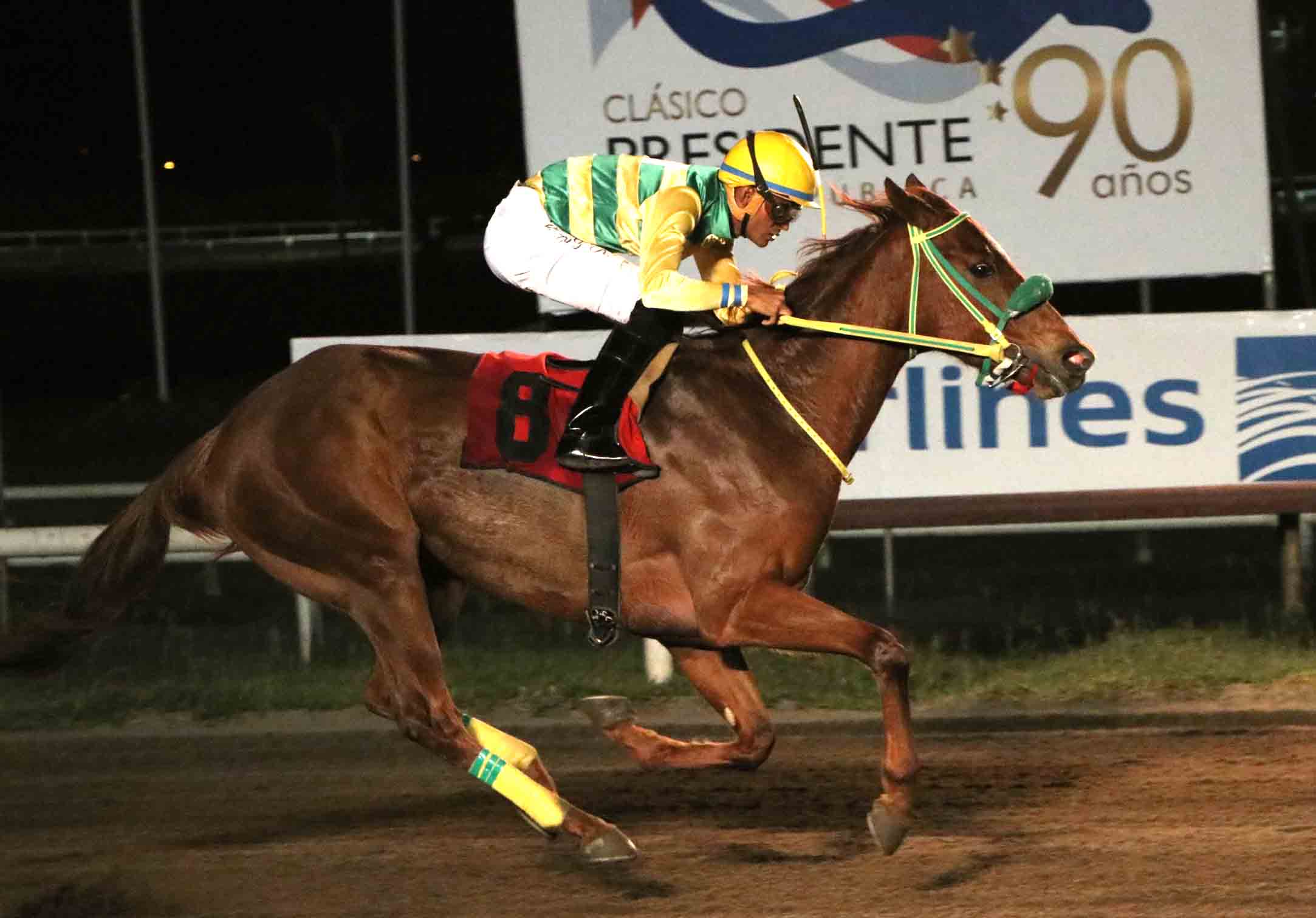 Correspondió al espigado látigo Omar Hernández Jr., llevar las riendas de la hija de Concerto, que nació el Chiriquí, es entrenada por Omar Hernández padre y corre con los colores del Stud Issamari.