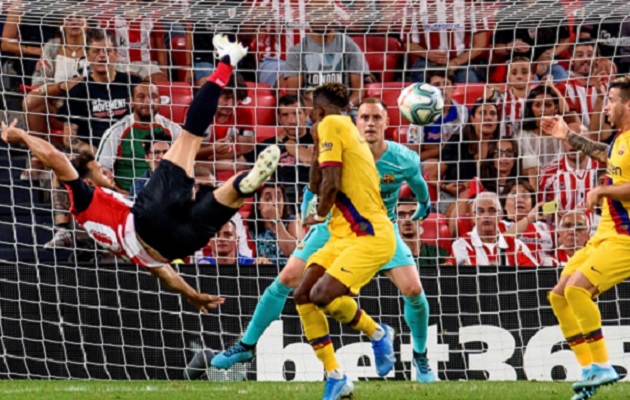 Un golazo de Aritz Aduriz en el minuto 89 de partido dio este viernes la victoria al Athletic Club sobre el Barcelona (1-0) en el encuentro inaugural de la Liga española 2019-20, en San Mamés.