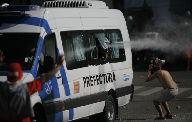 Algunos proyectiles rompieron vidrios del vehículo y a continuación la Policía empleó gases para dispersar a los agresores lo que terminó por afectar a los jugadores, según explicaron directivos de Boca Juniors.