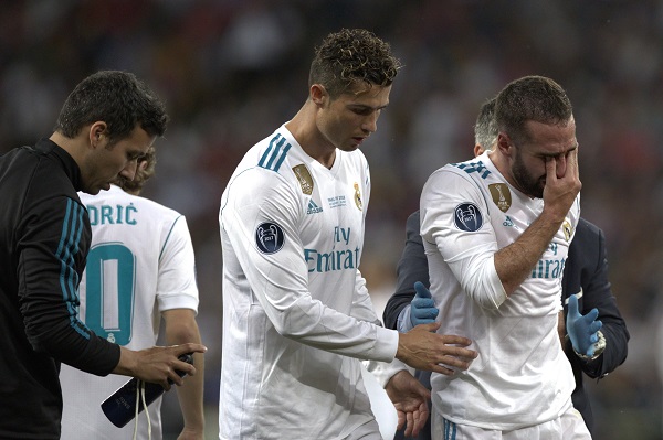 Carvajal se tuvo que retirar durante la primera parte de la final de la Champions al intentar dar un taconazo en una jugada de ataque.