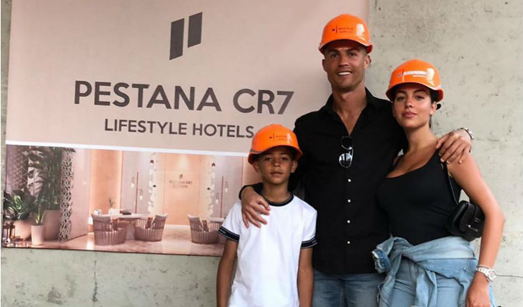 Cristiano Ronaldo compartió en sus redes sociales un par de foto en la que aparece junto a la madre de dos de sus hijos, la modelo hispano argentina Georgina Rodríguez y con su hijo Cristiano Jr., durante una visita que el delantero portugués hizo a la obra de construcción de su proyecto hotelero.