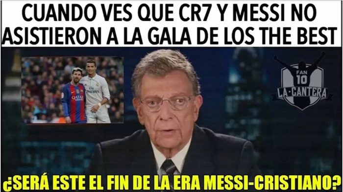 Las ausencias de Cristiano Ronaldo y Lionel Messi a la Gala The Best, no los libró de ser parte de los memes.