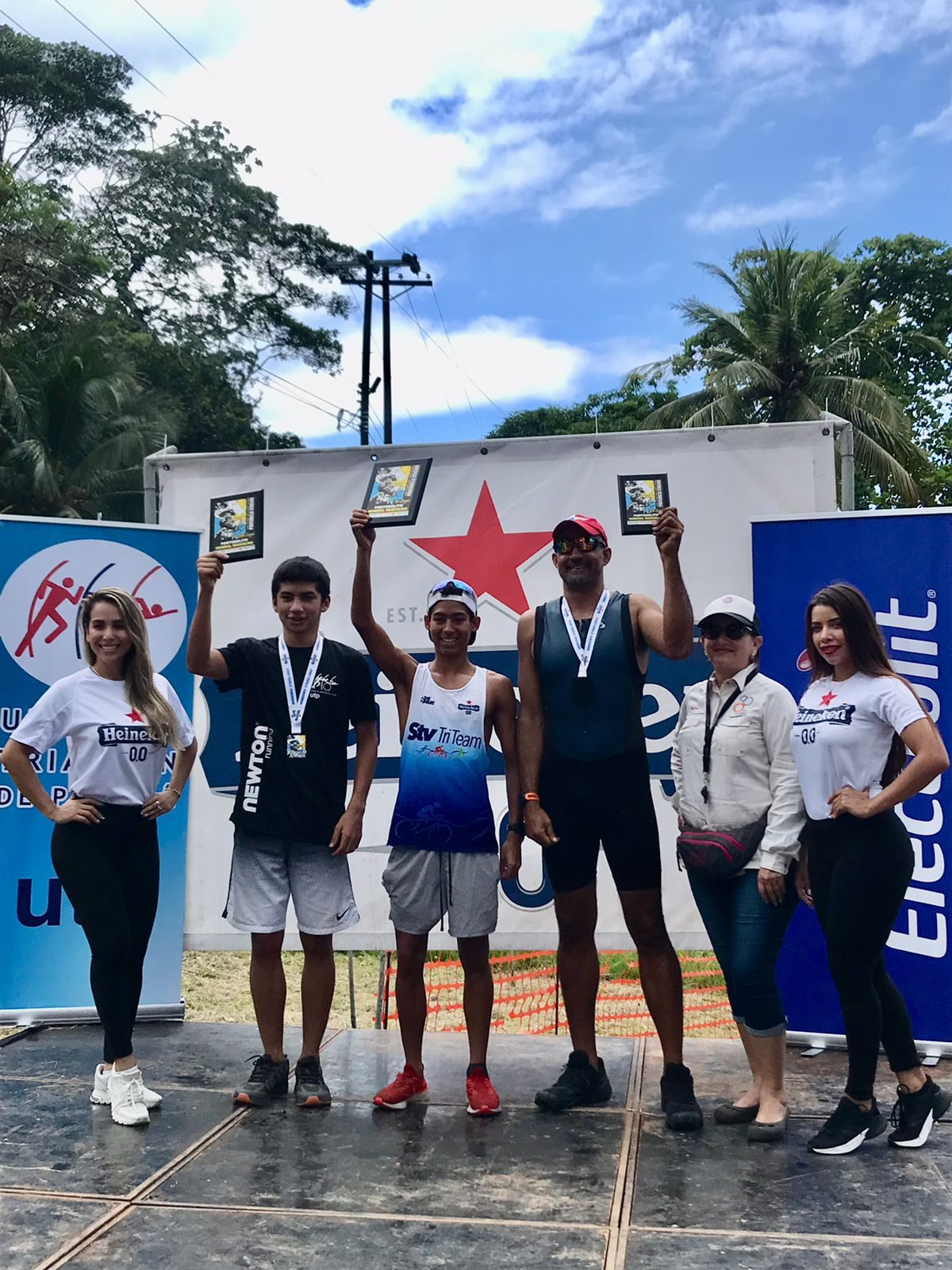 Villalta logró hacer el recorrido de los 1,600 metros de natación, 40 kilómetros en bicicleta montañera y 10 kilómetros de carrera en trillo o montaña en un tiempo de 2 horas, 36 minutos y 09 segundos, mientras que Mata en la femenina logró un registro de 3:12:34.