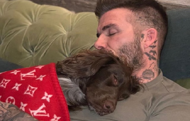 David Beckham abriga a su perra con una manta de más de 5 mil dólares