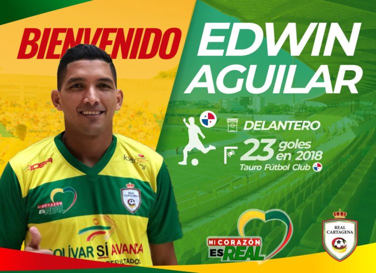 El Real Cartagena de Colombia (Categoría Primera B), confirmó la incorporación del delantero panameño Edwing Aguilar, quien estuvo en las filas de Tauro FC don de salió campeón en la LPF.