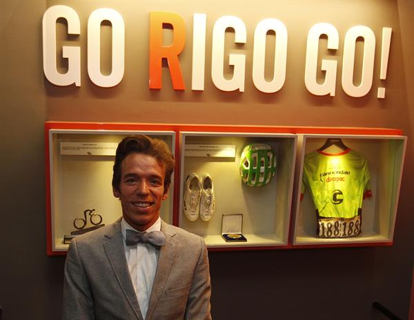 En la imagen, el ciclista colombiano Rigoberto Urán en una tienda de su marca de ropa deportiva 'Go Rigo Go', en Medellín (Colombia) . EFE