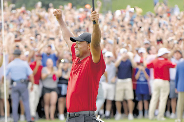 Woods dio un repunte que ni él mismo podía vaticinar hace un año. Una caótica celebración que no se había visto ni siquiera en las épocas más gloriosas del golf se dio ayer.